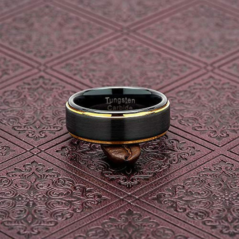 Black Tungsten Rings For Men Wedding Band Gold Step Edge Size 6 16 Tungsten 9 5 Walmart Com